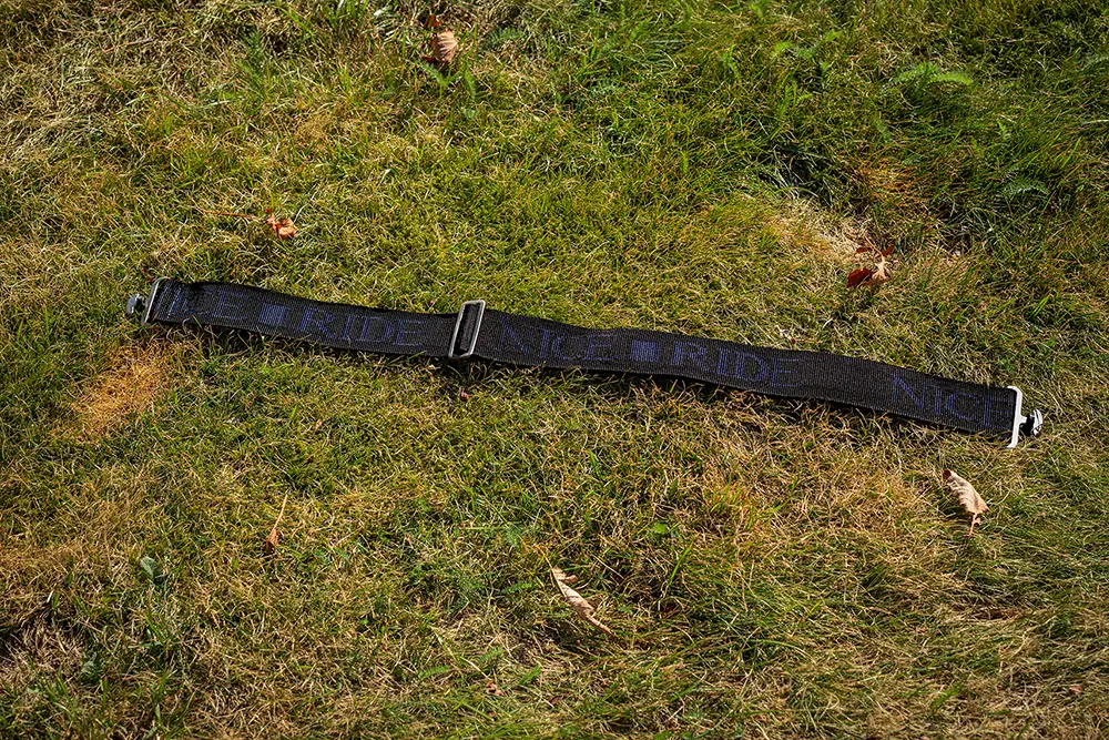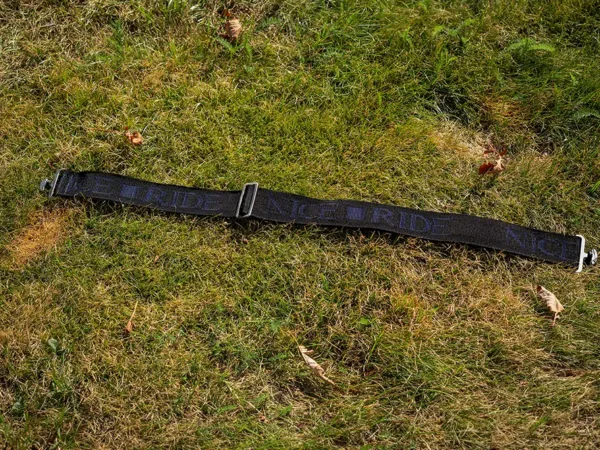 Ett justerbart framspänne med kardborreförslutning.