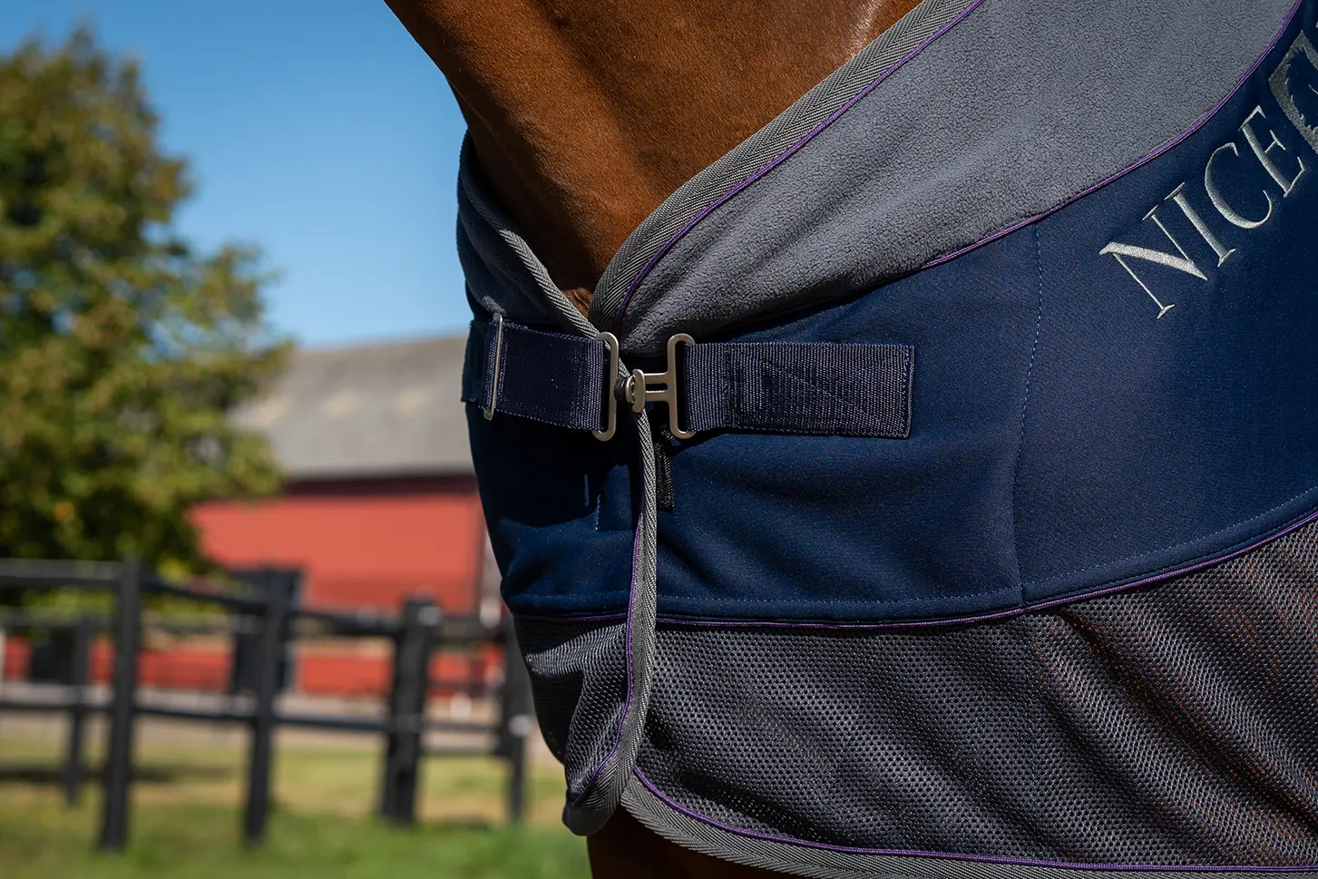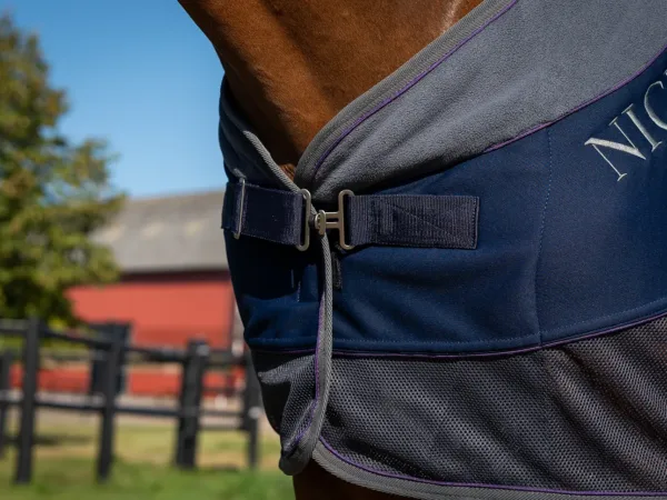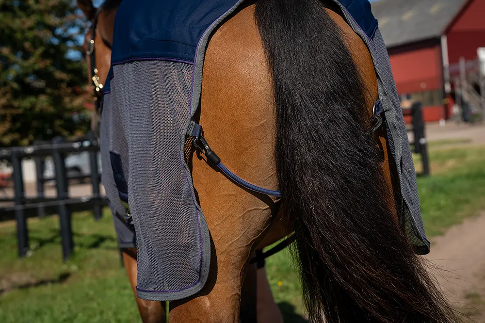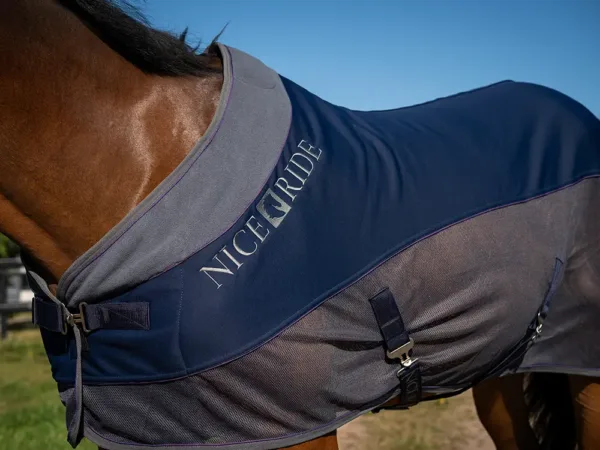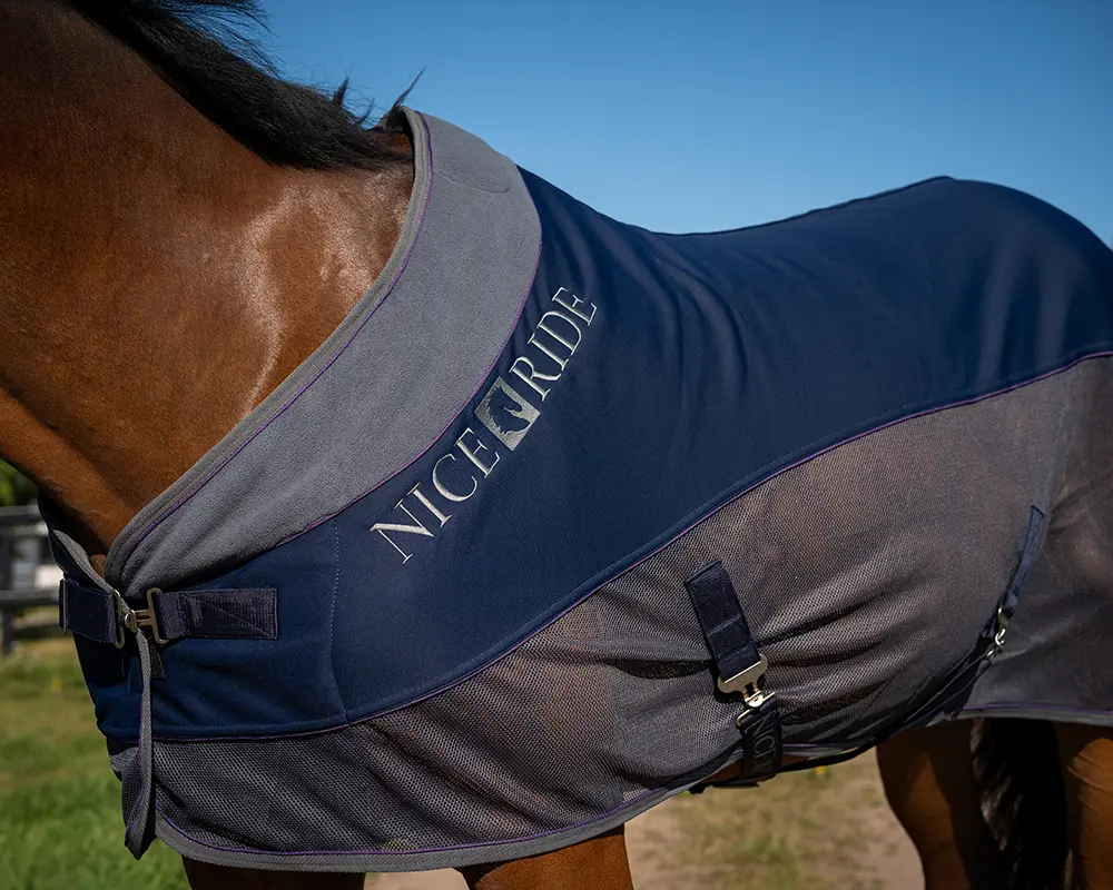 Två lagers fleece 100 % polyester hjälper till att hålla dom viktiga ryggmusklerna varma. Samtidigt som mesh tyget på sidorna hjälper till att hålla hästen sval. Mesh tyget håller också borta dom irriterande insekterna och transporterar bort svett. Skön fleecekrage runt halsen.